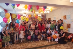 На праздник приехали гости с подарками. Представители с департамента КНБ подарили детям электронное пианино и детские вещи, гости РЦРЗ - республиканского центра развития здравоохранения вручили игрушки для малышей и корзины с фруктами, студенты с бизнес-колледжа сделали подарки своими руками, самым почетным гостем была - Рахимова Амина Шариповна, которая всегда радует детей и подарками, и походом в СИТИ ПЛЮС.